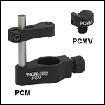 The PCM(/M) Post Clamp and PCMV(/M) V-Groove Base Adapter are ideal for mounting cylindrical objects ranging from Ø0.02" (0.6 mm) to Ø0.52" (13.2 mm) onto a Ø1/2" Optical Post. The post clamp's 0.65" (16.5 mm) profile allows the mount to easily fit into a space-constrained setup. Please note that a complete post clamp mount will require a PCM(/M) Ø1/2" post clamp and a PCMV(/M) V-groove base adapter, which are sold separately.