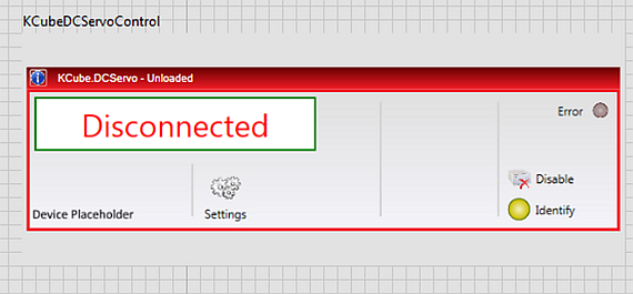 - The LabVIEW front panel will now display the Kinesis device's user interface (Figure 2.6). The device methods and properties can now be accessed via the block diagram. Please note that the device UI will appear as ‘Disconnected’ until the VI is running and the control has been initialized.