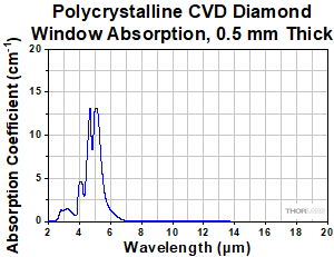 (posted 2023-08-30 15:38:18.957) the absorption spectrum you show for your diamond windows appears to be incorrect: https://www.thorlabs.com/newgrouppage9.cfm?objectgroup_id=15962&pn=WGM1005