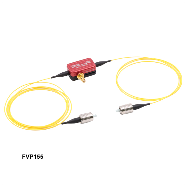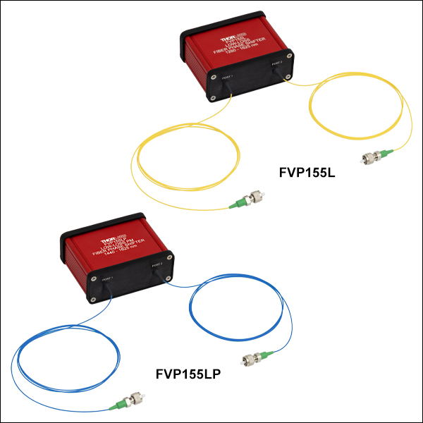 The FVP155L uses SMF-28 Ultra fiber with an operating range of 1260 nm to 1625 nm and offers a low polarization dependent loss (<0.01 dB), suitable for applications where input light polarization can vary. The FVP155LP uses PM1550-XP fiber with an operating range of 1440 nm to 1625 nm and offers >18 dB polarization extinction ratio for applications that require maintaining a linear light polarization throughout the fiber setup.