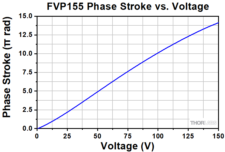 Figure 3.1 Typical FVP155 Phase Shifter Phase Stroke Versus Input Voltage at 1550 nm, Measured With a 2 kHz Input Modulation Frequency