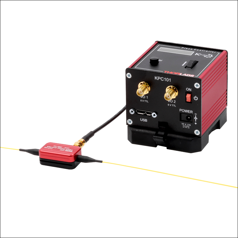 These phase shifters can be controlled by many of Thorlabs' piezo controllers via the SMC input on the devices. For a list of compatible controllers and their bandwidths, see Table 4.1 in the Controller Selection Guide tab. All phase shifters are also equipped with a thermal switch to prevent damage to the device under high temperatures.