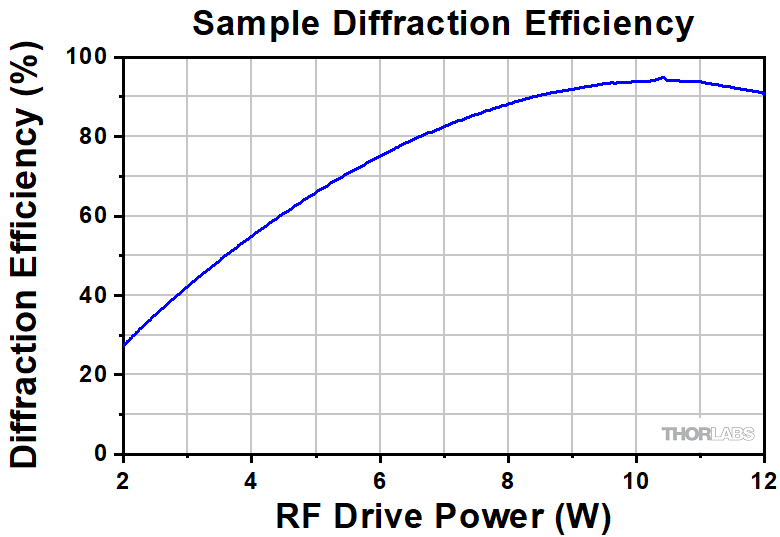 Figure 2.1 The sample diffraction efficiency of a Q30080 Q-switch with respect to RF drive power is shown above.