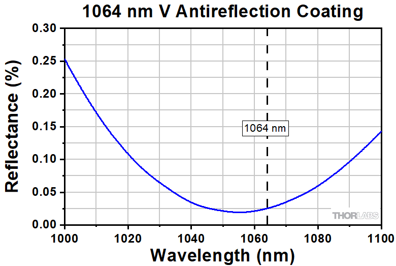 Figure 2.2 The reflectance of the standard 1064 nm V-Coating used in Thorlabs' AOMs and Q-switches is shown above.