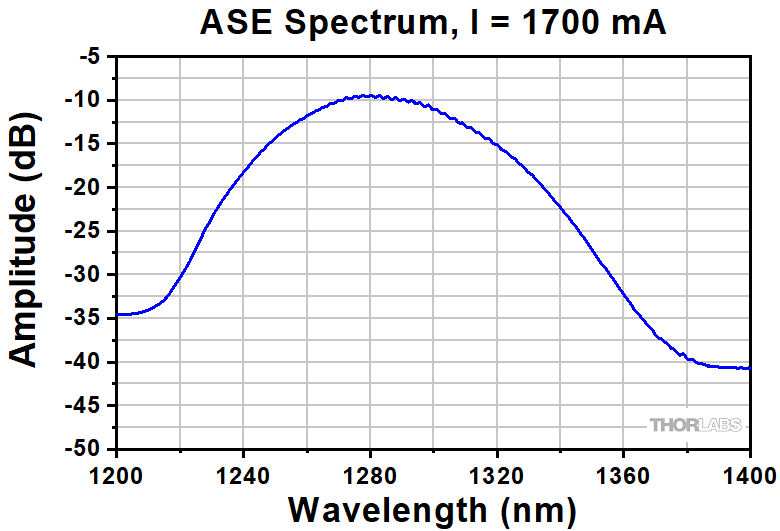 (posted 2016-05-04 02:53:59.0) Response from Bweh at Thorlabs USA: For a 700mA drive current, we have a plot for the amplified spontaneous emission spectrum (ASE) under the "Graphs" tab. The gain variation with output power was measured at 1312nm, which is in the O-band. udaytronic