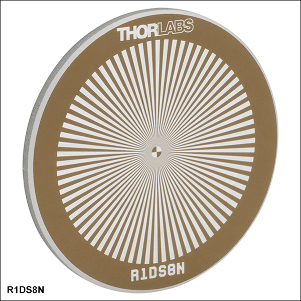 Resolution test targets are typically used to measure the resolution of an imaging system. They consist of reference line patterns with well-defined thicknesses and spacings and are designed to be placed in the same plane as the object being imaged. By identifying the largest set of non-distinguishable lines, one determines the resolving power of a given system. Thorlabs offers resolution test targets with 1951 USAF, NBS 1952, and NBS 1963A patterns. Targets are also available with sector star (also known as Siemens star) patterns, Ronchi rulings, a variable line grating, calibration targets with squares or circles, or a combination of patterns for resolution and distortion testing. For more information on each pattern, see the Resolution Targets tab.