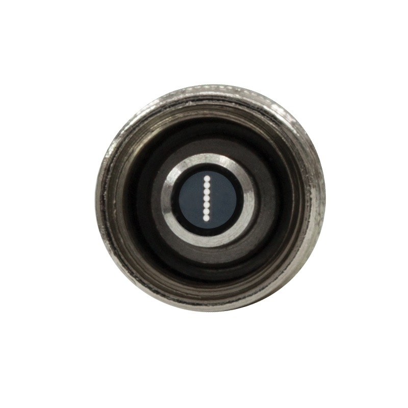 When plugging the linear end of the bundle cable into the spectrometer or another device, the fiber array must be aligned with the entrance slit. For ease of alignment, the fiber array's axis is indicated by a line on the connector sleeve, as shown in Figure 1.4. Precise alignment of the bundle and slit is not critical, but misalignment of more than ±5° can cause a reduction in signal strength. In order to maximize signal intensity, we recommend rotating the bundle while monitoring light levels in the spectrometer; once optimized, tighten down the threaded portion of the SMA connector to lock the bundle in place. When using these bundles with our CMOS Spectrometers, the fiber array should be oriented vertically.